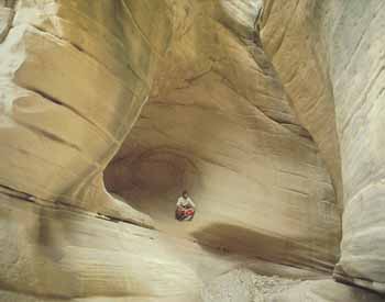 Squaw and Willis Canyon Hiker slickrock alcove, upper Bull Valley Gorge. © RAY WHEELER | GRAND STAIRCASE. Bordering Bryce Canyon National Park, the proposed Grand Staircase Wilderness would protect the pinyon and juniper forest-covered benches and deeply-carved canyons of Paria River watershed. Of 44,000 acres within four proposed BLM wilderness areas directly bordering Bryce Canyon National Park, H.R.1745/S.884 would protect not one acre. H.R.1745/S.884 would also zone for development over 150,000 acres of forested mesa-tops and slickrock canyons within the Paria-Hackberry and Cockscomb roadless areas, even omitting the living heart of this proposed wilderness--the Paria River itself. Proposed development includes huge chaining (deforestation) projects which would be directly visible from Bryce Canyon National Park, off-road vehicle use throughout the length of the Paria River canyon, and a proposed new railroad that would cut across the Paria north of the Cockscomb. |
